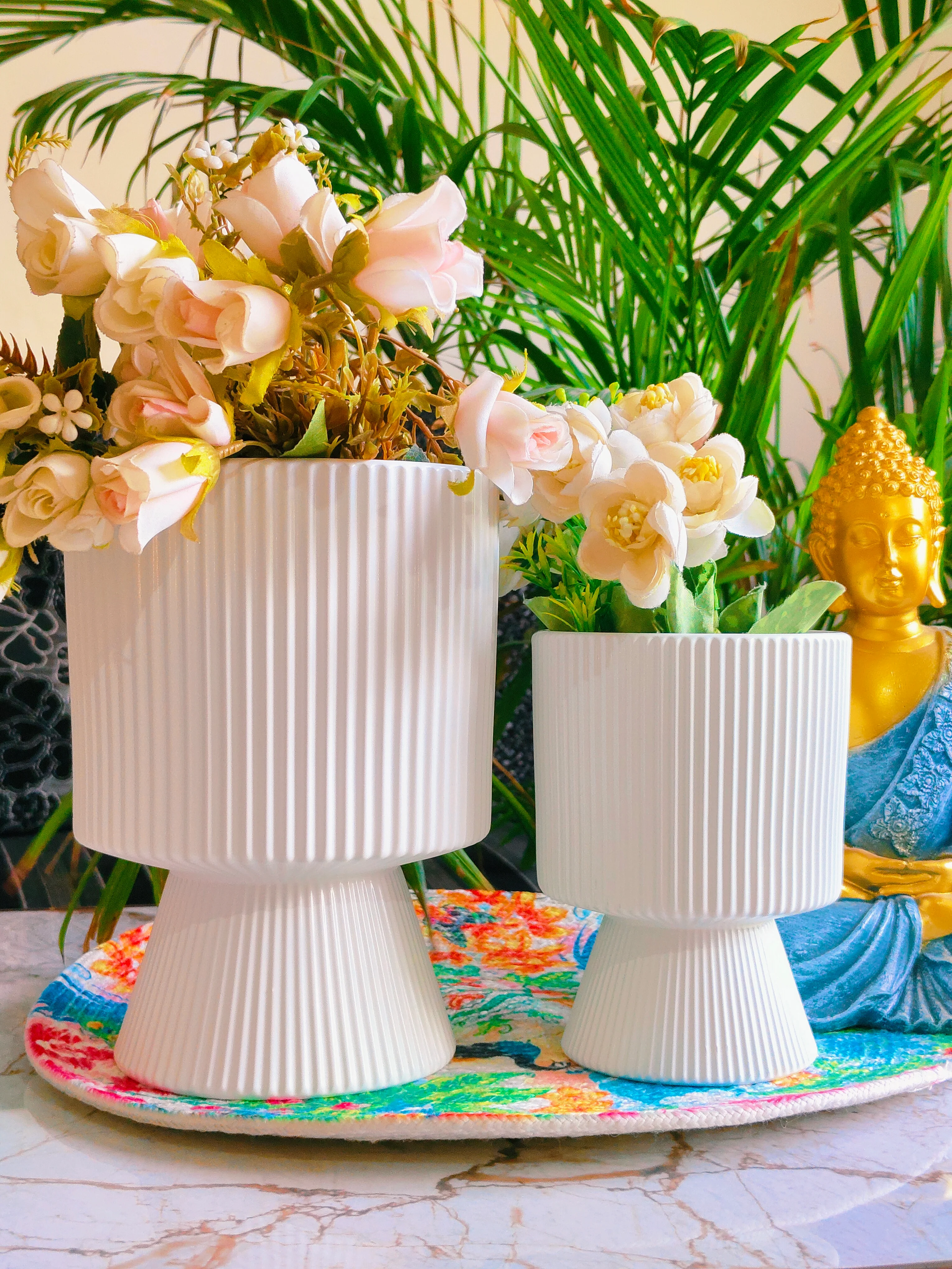 Elegant white ceramic pot with drainage hole. Perfect for indoor plants.