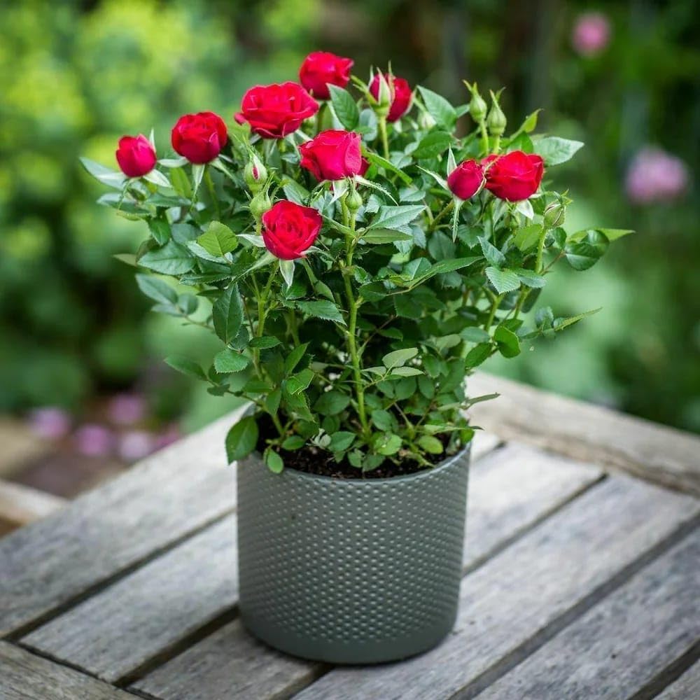 Classic red rose plant for your garden. Produces beautiful fragrant blooms throughout the season.
